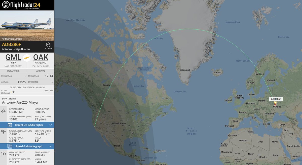 Flightradar24 On Twitter Antonov An 225 Mriya Just Took Off From Kiev And Is Now En Route To Oakland International Airport Https T Co Jibd8b9ard Https T Co C5oj0krmju